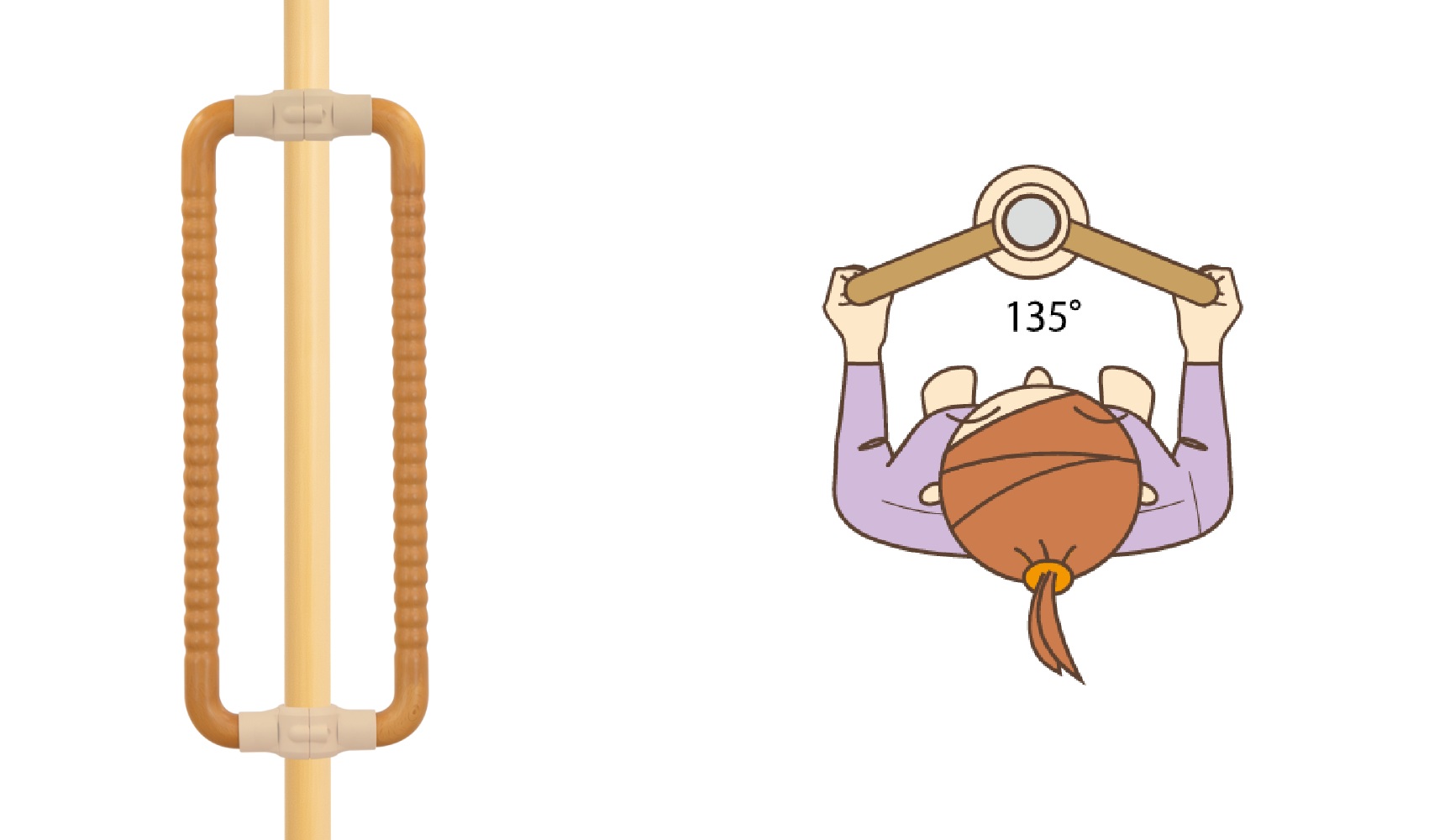 特徴2本セットで使うベスポジのオプション手すりです。また、手すりの間の角度は3段階(90°、135°、180°)に調整できます。