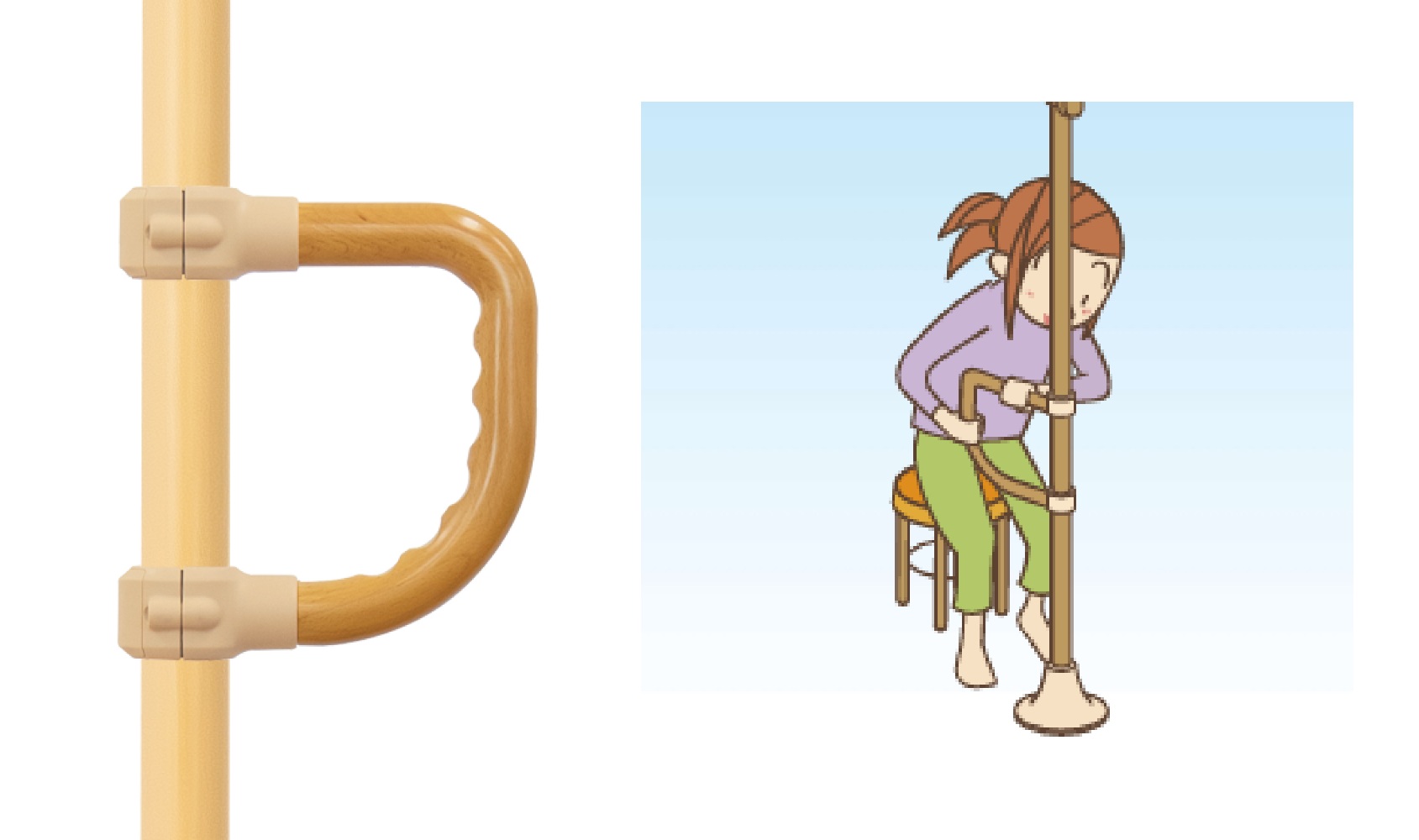 特徴D字型のベスポジのオプション手すりです。引っ張る動作、押さえつける動作、両方の立ち上がり方に対応できます。